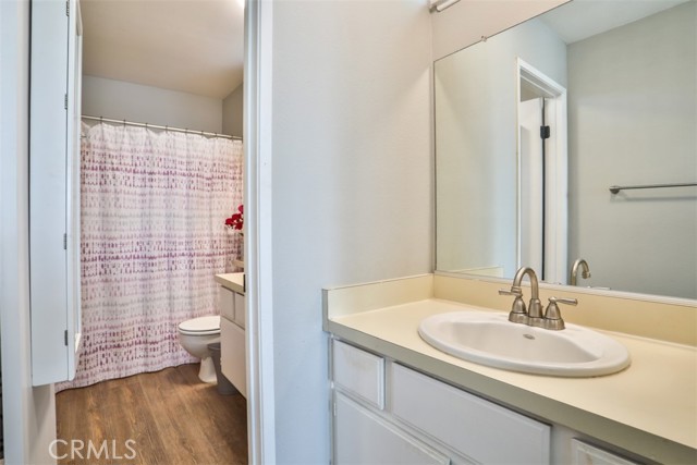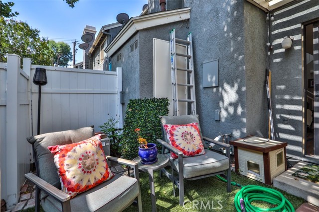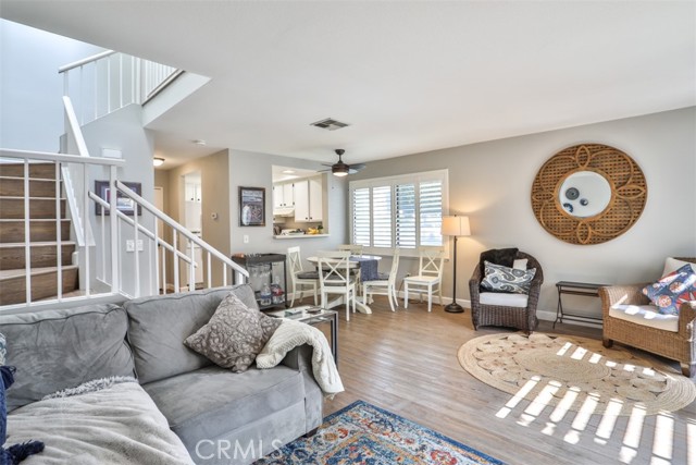 Welcome home to this light and airy end-unit condo nestled in a beautifully maintained gated community. With only one shared wall, this residence offers added privacy and a peaceful atmosphere. Step inside to discover newer wood laminate flooring, plantation shutters throughout, and an abundance of natural sunlight that fills the space with a relaxed charming vibe. The living room flows effortlessly into a chic patio—perfect for morning coffee or entertaining under the stars. The kitchen features recessed lighting and a smart layout designed to make meal prep both efficient and enjoyable. Upstairs, you’ll find two comfortable bedrooms, including a spacious primary retreat. Each bedroom adorns an abundance of natural light. The second bedroom has a walk in closet, room enough for all of your clothes and shoes! Indoor laundry for added convenience, and a one-car detached garage provides secure parking and additional storage. Enjoy resort-style living with access to the community pool and spa, all within a secure gated setting. Whether you're looking for a cozy retreat or a stylish space to entertain, this home offers the perfect blend of comfort, charm, and function.