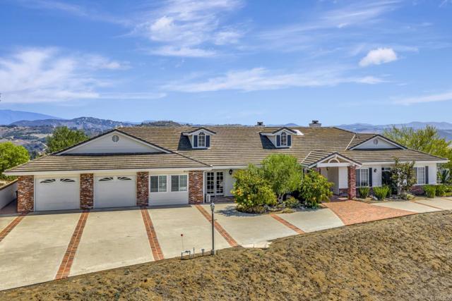 GREAT NEW PRICE!!! *** TRANQUIL, RIDGE-TOP CUSTOM-BUILT HOME with unparalleled panoramic sunrise AND sunset views from nearly every room in the house. Majestic rolling hills and Palomar Mountain to the east and then there's sweeping views of rolling hills and the Sleeping Indian mountain formation to the west, bringing in the gentle ocean breeze. From the moment you ascend the long elegant driveway you’ll feel transported to your very own top-of-the-world private retreat. The views from this home are absolutely breathtaking and a MUST SEE! The gorgeous beveled-glass front door welcomes you into this expansive 4-bedroom home boasting beautiful high beam ceilings, as well as, an additional separate office/guest unit with its own entrance and kitchenette. This spacious home is ideal for entertaining with the generously sized kitchen alongside the welcoming family room, all of which flow gently into the formal dining and living rooms. Plus there’s a great perk with having fully-owned solar, TWO walk-in closets in the primary suite, spacious kitchen with walk-in pantry, induction oven, high ceilings, raised garden beds, lime and lemon trees, a gazebo perfect to enjoy the morning or even the afternoon views. With well over 2 acres of land, the possibilities are endless—you could possibly have your own avocado grove, swimming pool, ADU, workshop or just leave it the way it is and enjoy this magnificent property located just minutes to the 76 yet it feels like it’s in another world—peaceful and serene. This is a MUST SEE home.